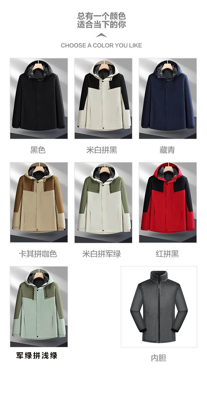 休闲冲锋衣工作服定制,冲锋衣三合一户外冲锋衣外套,内胆可拆,秋冬防风衣三合一冲锋衣男女同款式都有。
