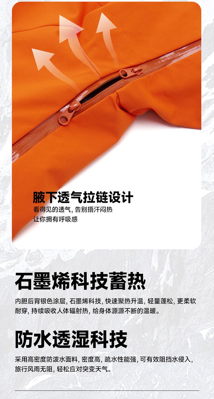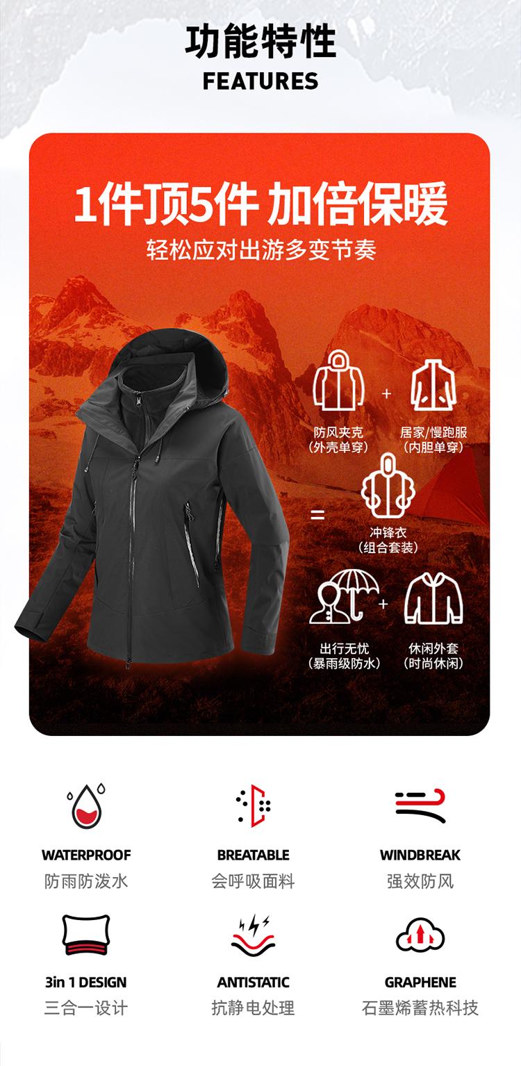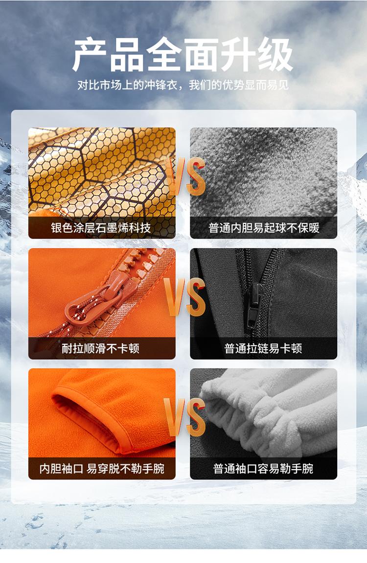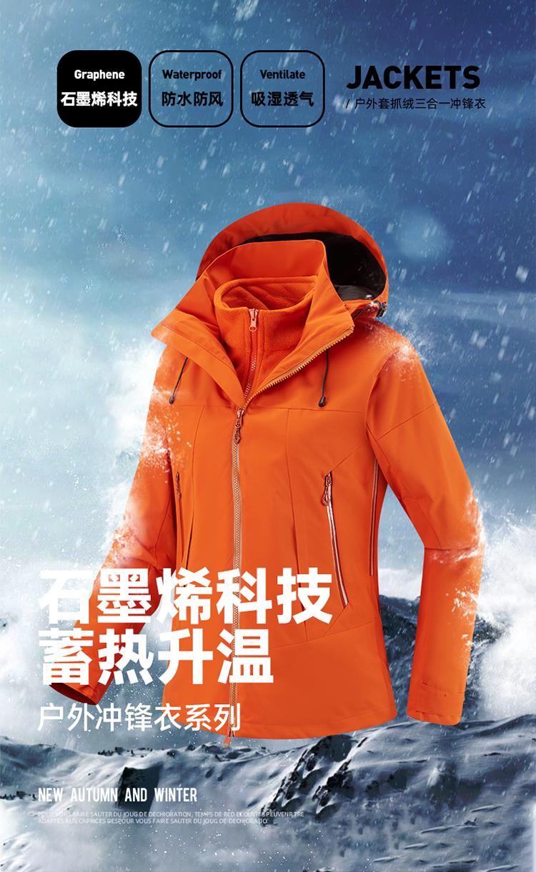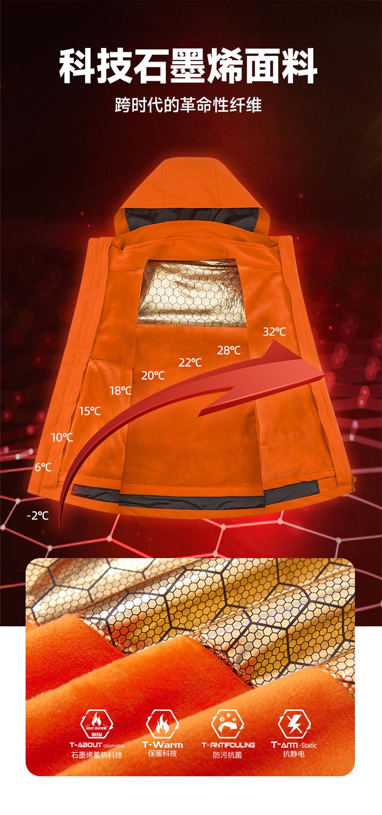 男女通码石墨烯加热三合一冲锋衣团体服工作服