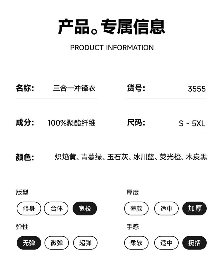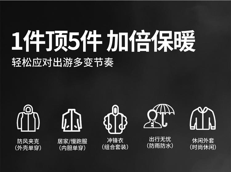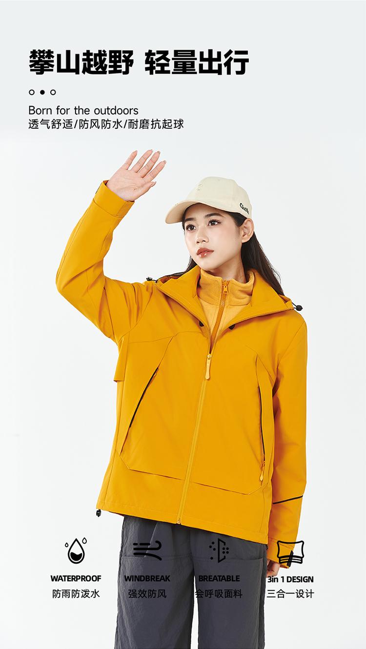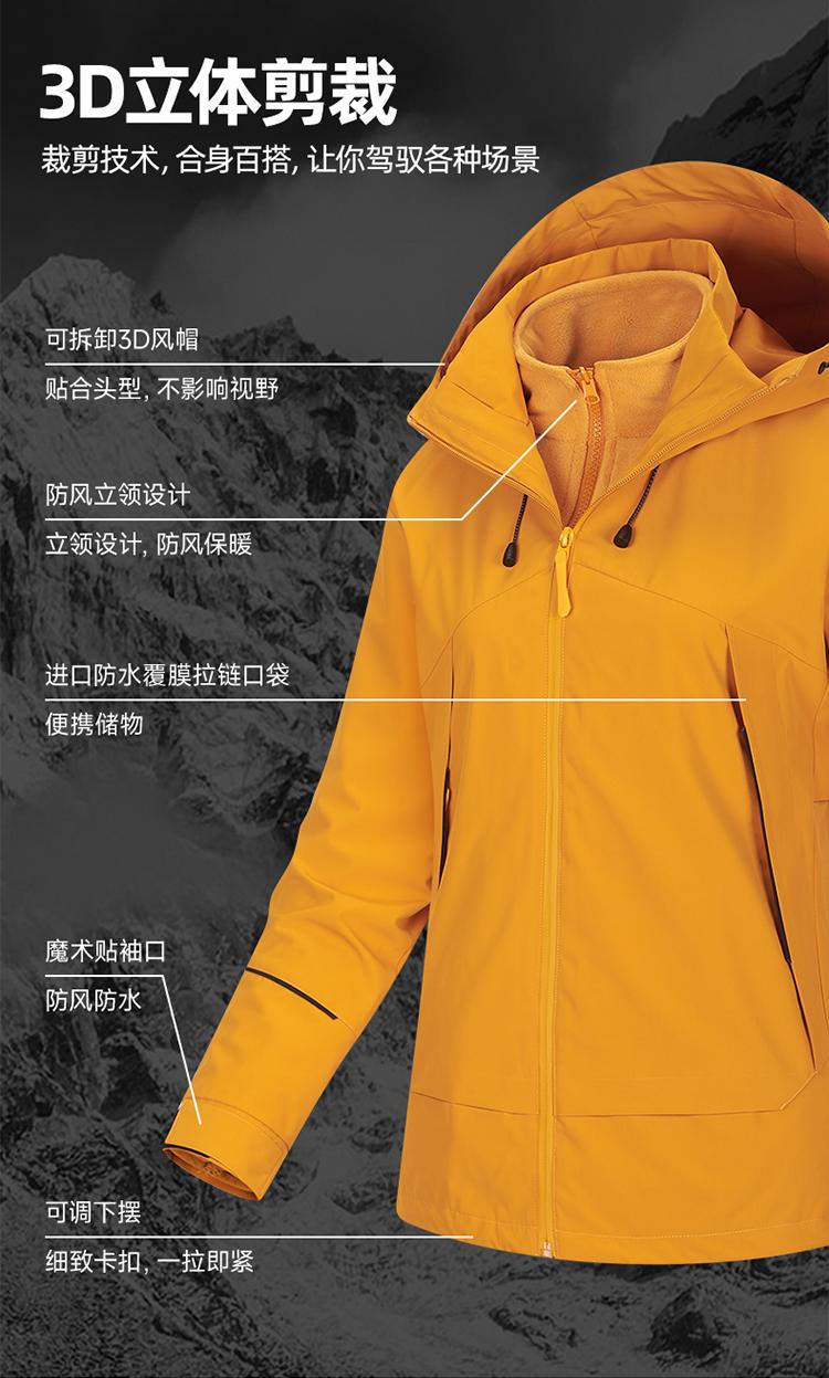 大口袋装饰男女通码纯色款三合一冲锋衣团体服工作服wanyouTL355501290195_2025冲锋衣精品推荐