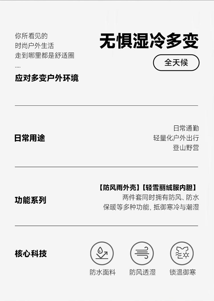 大口袋装饰男女通码纯色款三合一冲锋衣团体服工作服