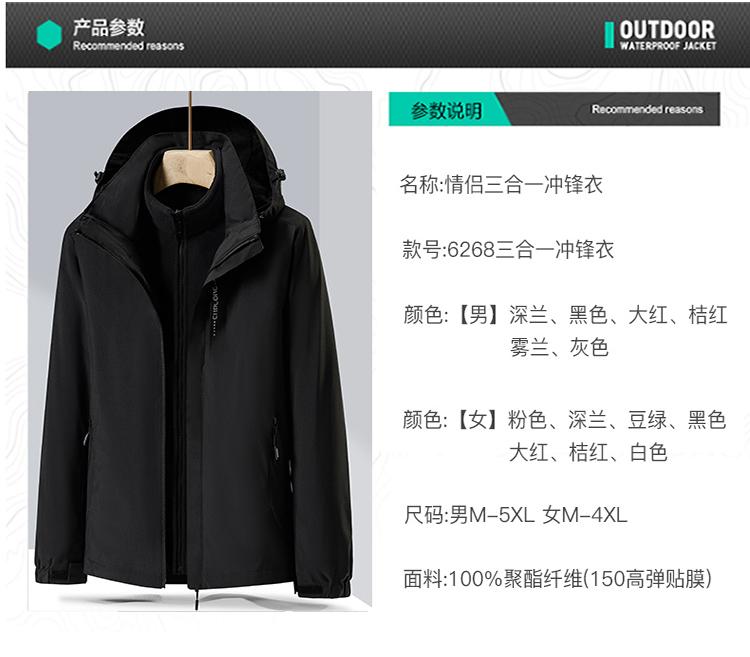 分男女尺码纯色款三合一冲锋衣团体服工作服wanyouTL62680830140_2025冲锋衣精品推荐