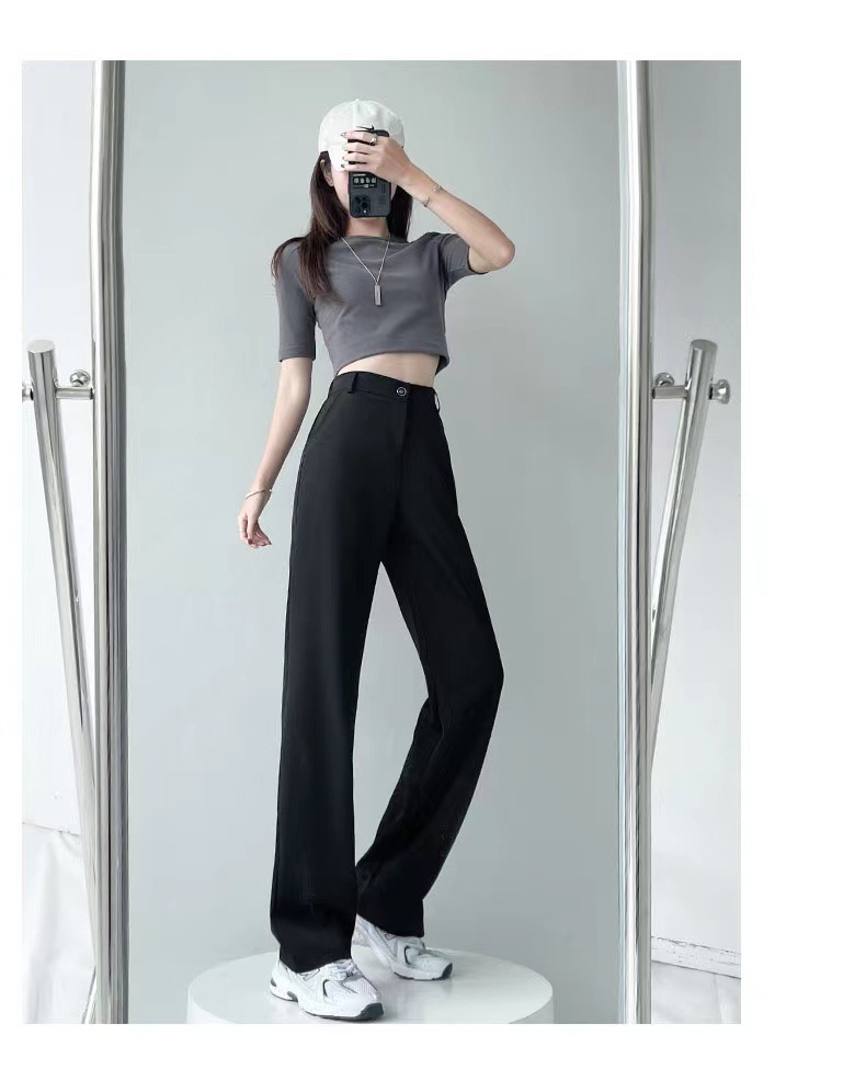 新款网纹垂感窄版直筒阔腿裤女高腰垂坠感显瘦休闲西装长裤zhedian632xiaku,一条起订,全国包邮