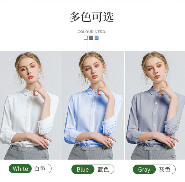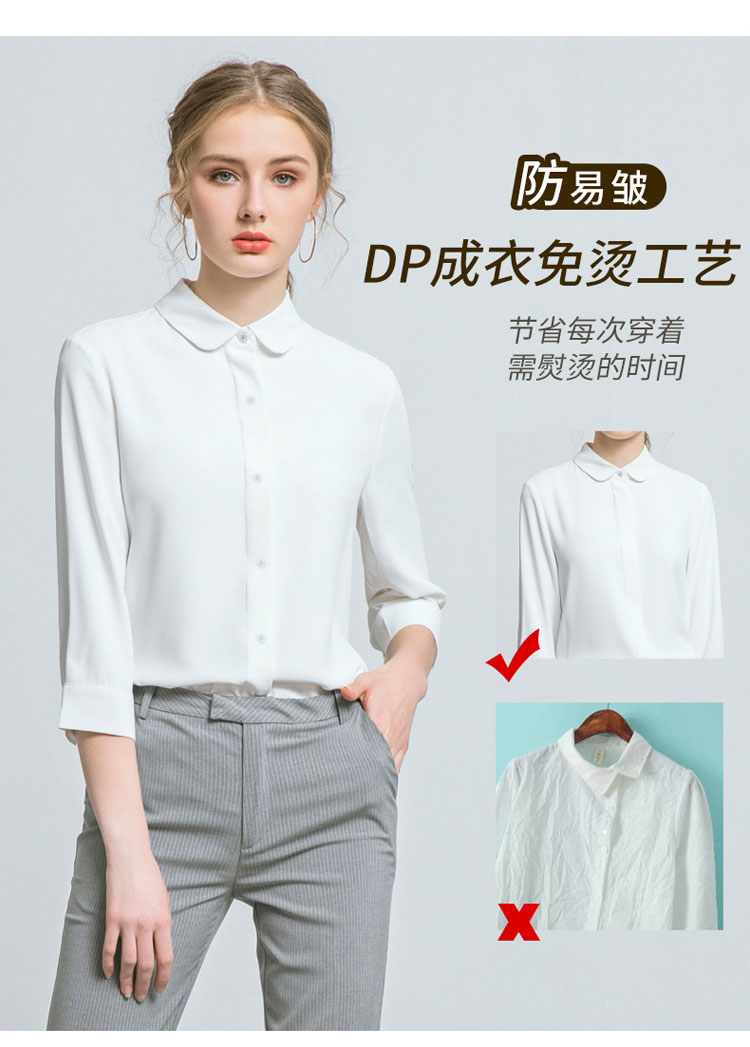 竹纤维娃娃领职业抗皱免烫衬衫女中袖新款