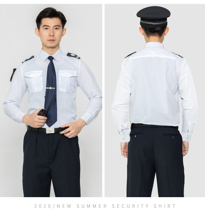 蓝色保安衬衫长袖车站检测站制服,物业公司保安服, 各种夏装秋冬装特训服、训练服、安保服; 执勤服、巡逻服、押运服、检测站工作服; 社区安保服门卫服、商城广场秩序员服; 交通路政反光衣工作服、春秋常服; 学校保安服、学生军训训练迷彩服; 建筑工地迷彩工服、军训迷彩服; 内保服、维稳服、综合执法工作服; 夏季短袖作训服安保执勤工作服。