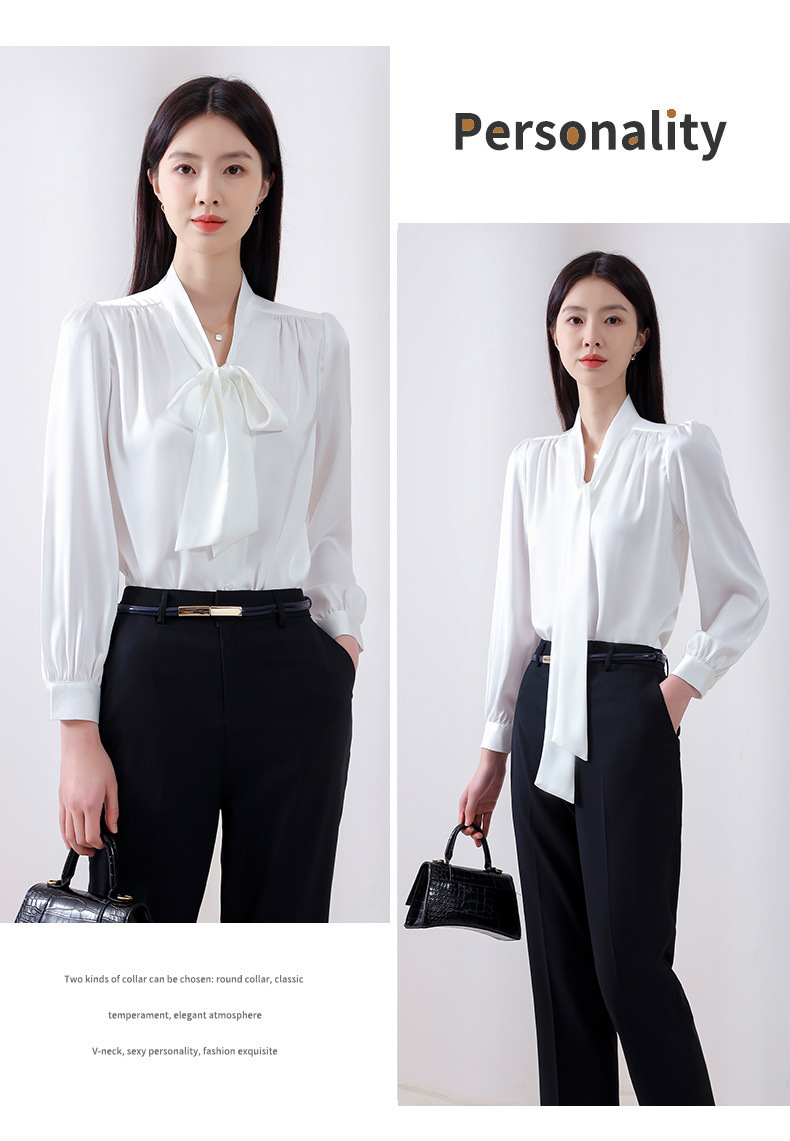 新款蝴蝶结衬衫女秋季长袖时尚洋气高级感工作服职业气质雪纺衬衣longshuai20030650changxiu