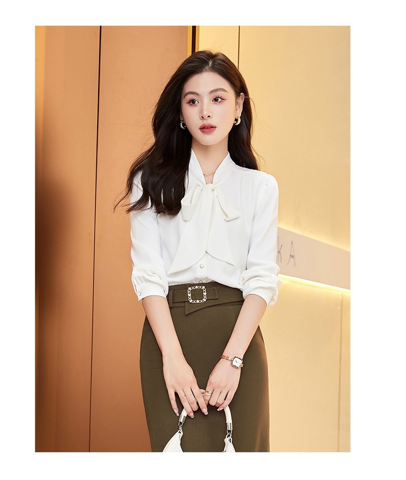 新款蝴蝶结衬衫女秋季七分袖时尚洋气高级感工作服职业气质雪纺衬衣longshuai20030650zhongxiu
