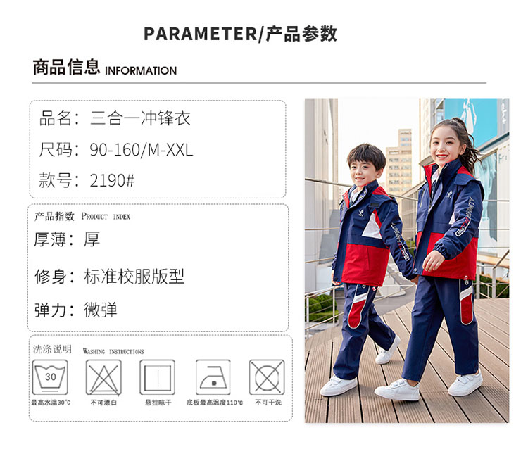 【189元/套】(三件套)中小学生时尚冲锋衣班服,校服运动服,1套起订,全国包邮