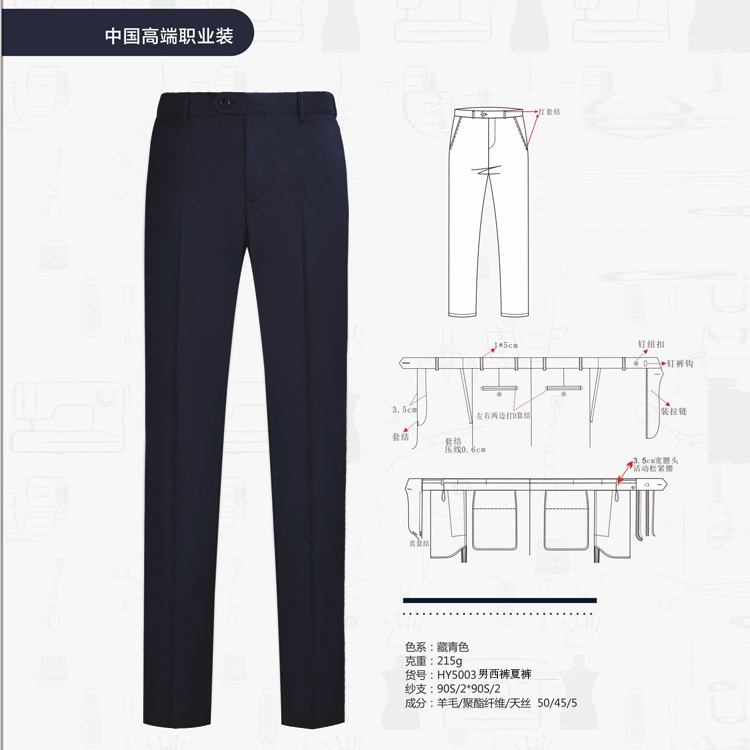 50%羊毛高端定制商务夏装藏青色男西裤yiwei5003nanxiku01150,1条起批,可定制印字logo,厂家直供,物美价廉